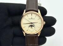 12344473 APS공장 예거르쿨트르 마스터 울트라씬 문페이즈 로즈골드금통 화이트다이얼 브라운가죽스트랩