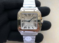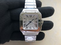 12053601 BV공장 까르띠에 산토스 2018 미디움 스틸 화이트다이얼 스마트링크브레이슬릿