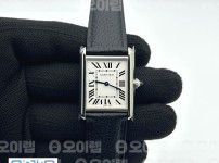 21235171 AF공장 까르띠에 탱크 머스트 라지 스틸 화이트다이얼 가죽스트랩