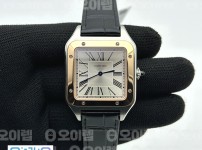 11090086B F1공장 까르띠에 산토스 뒤몽 46.6mm 로즈골드콤비 실버다이얼 블랙가죽스트랩
