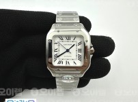 01491055 F1공장 까르띠에 산토스 뒤몽 31.4 스틸 실버다이얼 블랙가죽스트랩