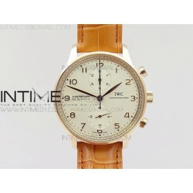 ZF공장 IWC 포르투기저 크로노그래프 PORTUGUESE IW3714 RG DIAMOND WHITE DIAL RG NUMERAL ON HONEY BROWN LEATHER STRAP A79350 (SLIM MOVEMENT)