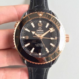 JH공장 오메가 씨마스터 다이버600M GMT 딥블랙 세라골드베젤 가죽스트랩
