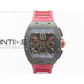 • KU공장 리차드밀 RM011 카본 크로노그래프 레드포인트 러버스트랩 RM011 CARBON CASE CHRONOGRAPH CARBON BEZEL SKELETON DIAL ON RED RUBBER STRAP A7750 KV공장