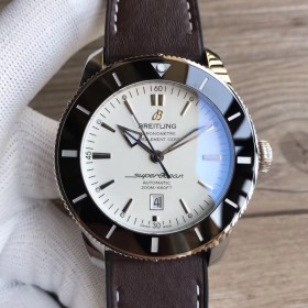 브라이틀링 슈퍼오션 헤리티지2 블랙인서트 화이트다이얼 브라운가죽스트랩