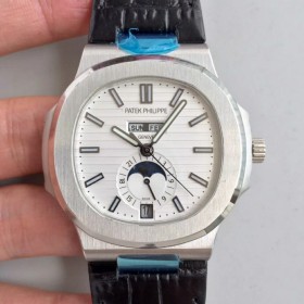 KM공장 v2 파텍필립 캘린더 문페이즈 5726 스틸 화이트다이얼 가죽스트랩