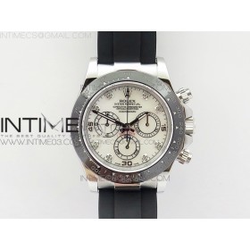 • JH공장 롤렉스 데이토나 스틸 세라믹베젤 화이트다이아몬드다이얼 러버스트랩 DAYTONA 116519LN WHITE MOP DIAL CRYSTAL MARKERS ON RUBBER STRAP A4130 (FREE XS RUBBER STRAP)
