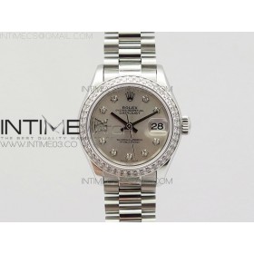 BP공장 레이디 데이저스트28 스틸 다이아몬드베젤 실버다이얼 다이아몬드인덱스 프레지던트브레이슬릿 DATEJUST 28MM SS DIAMOND BEZEL SILVER DIAL ON SS BRACELET ETA2671