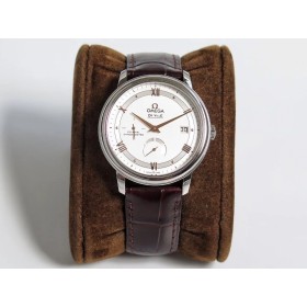 • TW공장 오메가 드빌 프레스티지 파워리저브 스틸 실버다이얼 로즈골드인덱스 가죽스트랩 DE VILLE PRESTIGE REAL POWER RESERVE SS WHITE DIAL RG MARKERS ON BROWN LEATHER A2824