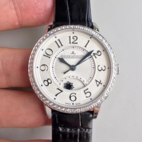 JL공장 예거르쿨트르 2018년 여성용 랑데뷰 나잇앤데이 34mm 스틸 다이아몬드셋팅 화이트텍스쳐다이얼 가죽스트랩 > 예거르쿨트르뒤로