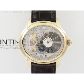 • v9공장 오데마피게 밀레너리 로즈골드금장 스켈레톤 화이트투톤다이얼 가죽스트랩 MILLENNIUM SERIES 15350 RG SKELETONAL DIAL ON DARK BROWN LEATHER STRAP A4101