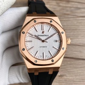대만공장 오데마피게 로얄오크 15400 로즈골드금통 화이트다이얼 러버스트랩