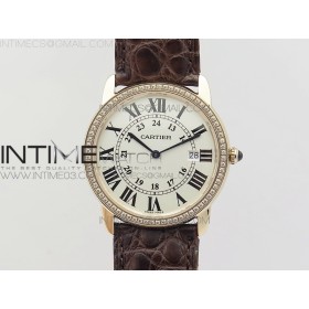 K11공장 까르띠에 롱드솔로 36mm 로즈골드&다이아케이스 화이트다이얼 가죽스트랩 RONDE SOLO DE CARTIER 36MM RG/DIA WHITE DIAL ON BLACK CROCO LEATHER STRAP RONDA QUARTZ