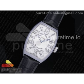 OX공장 프랭크뮬러 크레이지아워 점핑아워무브먼트 스틸 화이트다이얼 화이트마커 가죽스트랩 Crazy Hours Real Jumping Hour SS White Dial White Markers on Black Leather Strap A23J