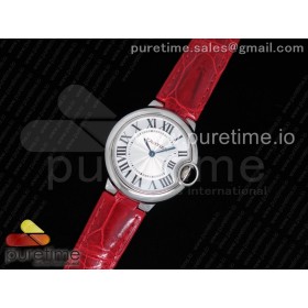 AF공장 까르띠에 발롱블루 33MM 스틸 레드크로커다일스트랩 Ballon Bleu 33mm SS White Textured Dial on Red Crocodile Strap Jap Quartz