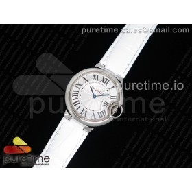 AF공장 까르띠에 발롱블루 33MM 스틸 화이트크로커다일스트랩 Ballon Bleu 33mm SS White Textured Dial on White Crocodile Strap Jap Quartz