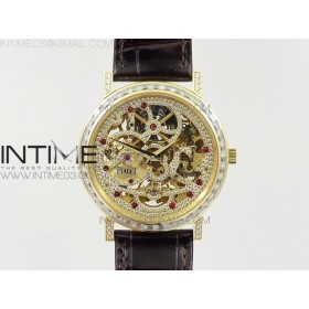 BBR공장 피아제 트레디션 옐로우골드금장 다이아페이비드 스켈레톤다이얼 가죽스트랩 TRADITION YG DIAMOND PAVED SKELETON DIAL ON BLACK LEATHER STRAP A23J