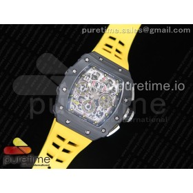 KU공장 리차드밀 RM011 카본케이스 크로노 크리스탈스켈레톤 옐로우다이얼 옐로우레이싱러버스트랩 RM011 Carbon Case Chrono Crystal Skeleton Yellow Dial on Yellow Racing Rubber Strap A7750 KV공장