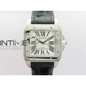 RXW공장 까르띠에 산토스100 33MM 레이디즈 스틸 화이트다이얼 가죽스트랩 SANTOS 100 33MM LADIES SS WHITE DIAL ON BLACK LEATHER STRAP SEIKO NH05A