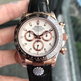 • WF공장 롤렉스 세라믹 데이토나 로즈골드 금통 화이트다이얼 가죽스트랩