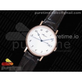 FK공장 브레게 클래식 5177 로즈골드 금통 화이트다이얼 다이아몬드베젤 가죽스트랩 Classique Auto 5177 RG White Dial Diamonds Bezel on Brown Leather Strap MIYOTA 9015 V2