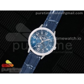 ZF공장 예거르쿨트르 랑데뷰 블루텍스쳐다이얼 다이어베젤 가죽스트랩 Rendez-Vous Night & Day SS Blue Textured Dial Diamonds Bezel on Blue Leather Strap A898