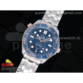 OM공장 오메가 씨마스터 다이버 300M 로즈골드 콤비 블루물결텍스쳐다이얼 브레이슬릿 2018 Seamaster Diver 300M SS/RG Blue Ceramic Blue Dial on SS/RG Bracelet A8800 (Black Balance Wheel)