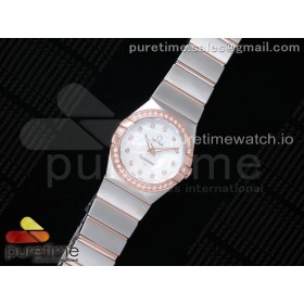 K11공장 오메가 컨스텔레이션 27MM 로골 자개다이얼 브레이슬릿 Constellation Ladies 27mm SS/RG Diamonds Bezel White MOP Textured Dial Diamonds Markers on SS/RG Bracelet ETA Quartz