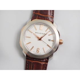 • BV공장 불가리 옥토 로즈골드 콤비 화이트다이얼 브라운가죽스트랩