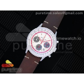 V9공장 브라이틀링 내비타이머 크로노 화이트다이얼 가죽스트랩 Navitimer B01 Chronograph 43 White Dial on Brown Leather Strap A7750