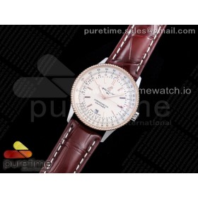 XB공장 브라이틀링 내비타이머 화이트다이얼 악어가죽스트랩 Navitimer 1 SS 41mm RG Bezel White Dial on Brown Croco Strap A2824