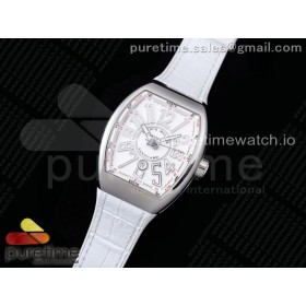 ZF공장 프랭크뮬러 뱅가드 화이트다이얼 거미스트랩 Vanguard V45 SS ZF Best Edition White Textured Dial on White Rubber Strap MIYOTA 9015