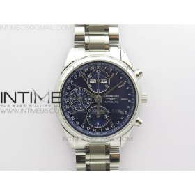 GL공장 마스터 문페이즈 크로노 블루다이얼 Master Moonphase Chronograph SS GLF 1:1 Best Edition Blue Dial on SS Bracelet A7751 > 론진뒤로