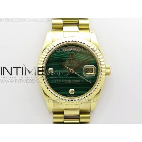 ED공장 롤렉스 데이저스트 36 옐로우골드금통 그린다이얼 Day date 432118 36mm YG EDF Best Edition Green Malachite Dial Crystal Markers on SS President Bracelet A2836