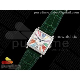 ZF공장 프랭크뮬러 마스터스퀘어 화이트다이얼 가죽스트랩 Master Square SS Ladies ZF 1:1 Best Edition White Colorful Roman Dial on Green Leather Strap Ronda Quartz