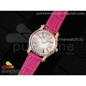 TWS공장 쇼파드 해피스포츠 36 로즈골드금통 다이아몬드풀파베 레인보우다이아몬드베젤 가죽스트랩 Happy Sport 36mm RG TWS 1:1 Best Edition Rainbow Diamonds Bezel White Dial on Pink Leather Strap A2892