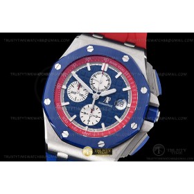 • RS공장 오데마피게 로얄오크오프쇼어 크로노그래프 44 스틸 블루베젤 레드이너베젤 블루다이얼 레드블루러버스트랩 AP0756B - AP ROO Chronograph Red SS/RU Blue/Stk RSF A3126 Mod
