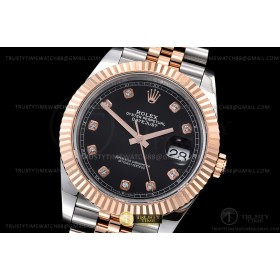 • GM공장 롤렉스 데이저스트 41 로즈골드콤비 블랙다이얼 플루티드베젤 다이아몬드인덱스 주빌레브레이슬릿 DJ2 41mm Jub Flt 904L RG/SS Blk/Dia GMF V2 VR3235