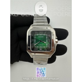 BV공장 까르띠에 산토스 40MM 라지 2018 스틸 그린다이얼 브레이슬릿 Santos De Cartier 2018 Mens XL SS/SS Grn BVF MY9019