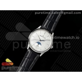 APS공장 예거르쿨트르 마스터 울트라씬 문페이즈 스틸 화이트다이얼 가죽스트랩 Master Ultra Thin Moon SS APSF 1:1 Best Edition Silver Dial on Black Leather Strap SA925 Super Clone