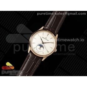 • APS공장 예거르쿨트르 마스터 울트라씬 문페이즈 로즈골드금통 화이트다이얼 브라운가죽스트랩 Master Ultra Thin Moon RG APSF 1:1 Best Edition White Dial on Brown Leather Strap SA925 Super Clone