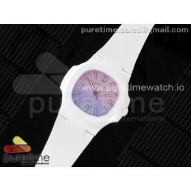 AMG공장 파텍필립 노틸러스 5711 화이트풀세라믹 퍼플그라데이션다이얼 화이트러버스트랩 AET Nautilus 5711 White Ceramic AMGF Best Edition Purple/Pink Dial on White Rubber Strap MIYOTA 9015