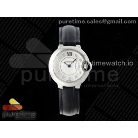 AF공장 까르띠에 발롱블루 28mm 다이아몬드다이얼 블랙가죽스트랩 Ballon Bleu Ladies 28mm SS AF 1:1 Best Edition White Diamonds Dial Bezel on Black Leather Strap Ronda Quartz