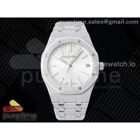 APS공장 오데마피게 로얄오크 15500 스틸 화이트다이얼 프로스티드 브레이슬릿 Royal Oak 41mm 15500 Frosted SS APSF 1:1 Best Edition White Textured Dial on SS Bracelet SA4302 Super Clone V2