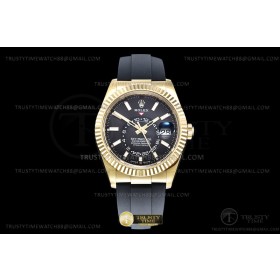 • ZF공장 롤렉스 스카이드웰러 옐로우골드금통 블랙다이얼 러버스트랩 텅스텐 Skydweller 336238 YG/RU Black ZF V2 Asia 2824