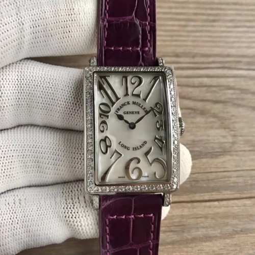 프랭크뮬러 롱아일랜드 스틸 다이아몬드케이스 화이트자개다이얼 실버양각인덱스 퍼플엘리스트랩