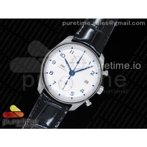 YL공장 IWC 포르투기저 크로노 클래식 42 스틸 화이트다이얼 블루핸즈 가죽스트랩 IWC Portugieser Chrono Classic 42 IW3903 White Dial Blue Markers on Black Leather Strap A7750