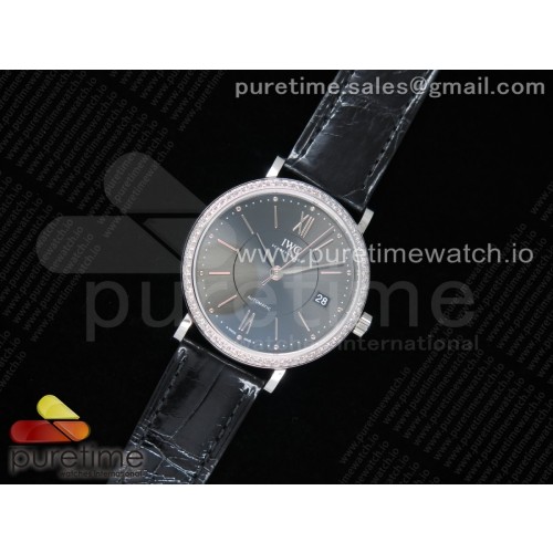 MF공장 IWC 포르토피노 37MM 그레이다이얼 악어스트랩 Portofino Automatic 37 SS Gray Dial Diamonds Bezel on Black Crocodile Strap A35111