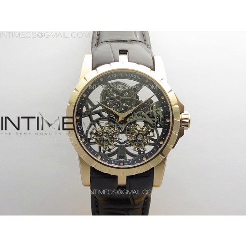 YS공장 로저드뷔 엑스칼리버 Rddbex0820 로즈골드금통 스켈레톤다이얼 블랙가죽스트랩 Excalibur Rddbex0820 RG YSF Best Edition Skeleton Dial on Black Leather Strap Asian RD100 Double Tourbillon