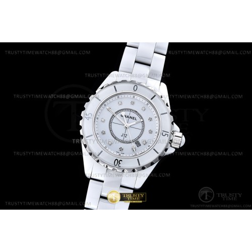 XF공장 샤넬 J12 화이트다이얼 33mm 여성용 J-12 Ladies 33mm CER/CER Wht/Num XF Sw Qtz
